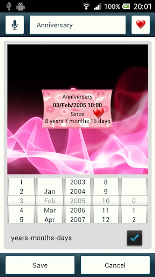 A simple widget that allows you to remember dates and see how much time has passed or how much time is left for a date. Record the birth of your child, an appointment must not forget or even how much time has passed since your wedding. This widget will remind you every day the exact time it happened since that special date, or the time remaining.