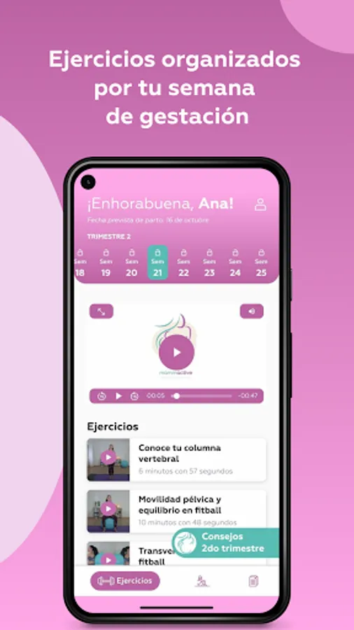 Mammactive is the most complete physiotherapy app for pregnant women in Spanish, aimed at knowing and activating your body for the changes of pregnancy and preparing for childbirth.