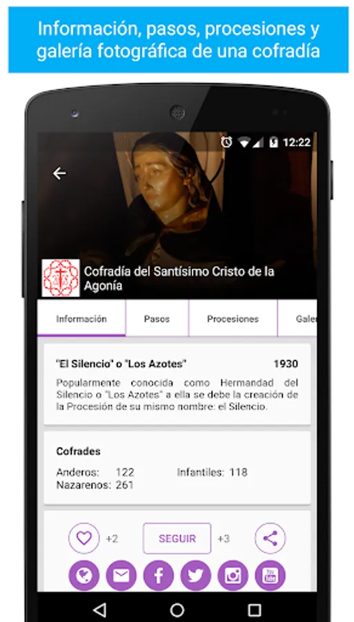 * Social: indicate what guilds, steps or processions you like and follow your favorite guilds to keep abreast of their actions.