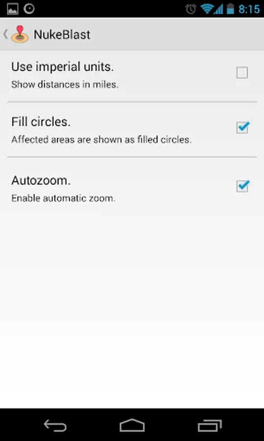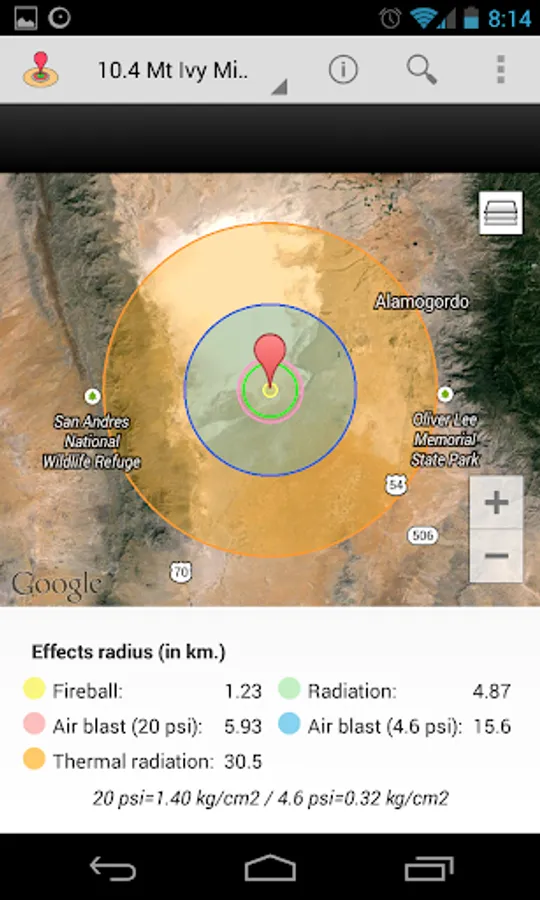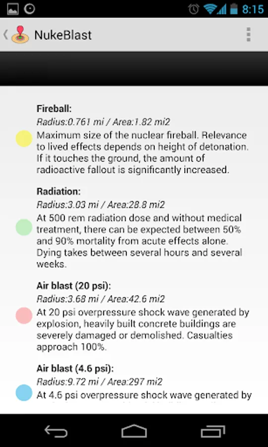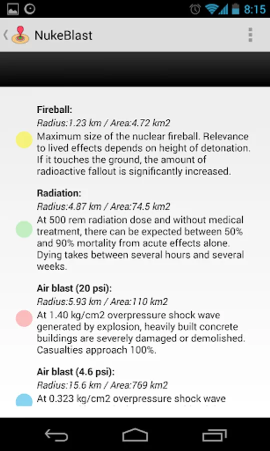 Want to know the effects of a nuclear explosion on your home town? With this app you can find out how much damage a nuclear weapon would cause. Shows the level of destruction and affected area that would be caused if the bomb was dropped by a ground-level detonation.