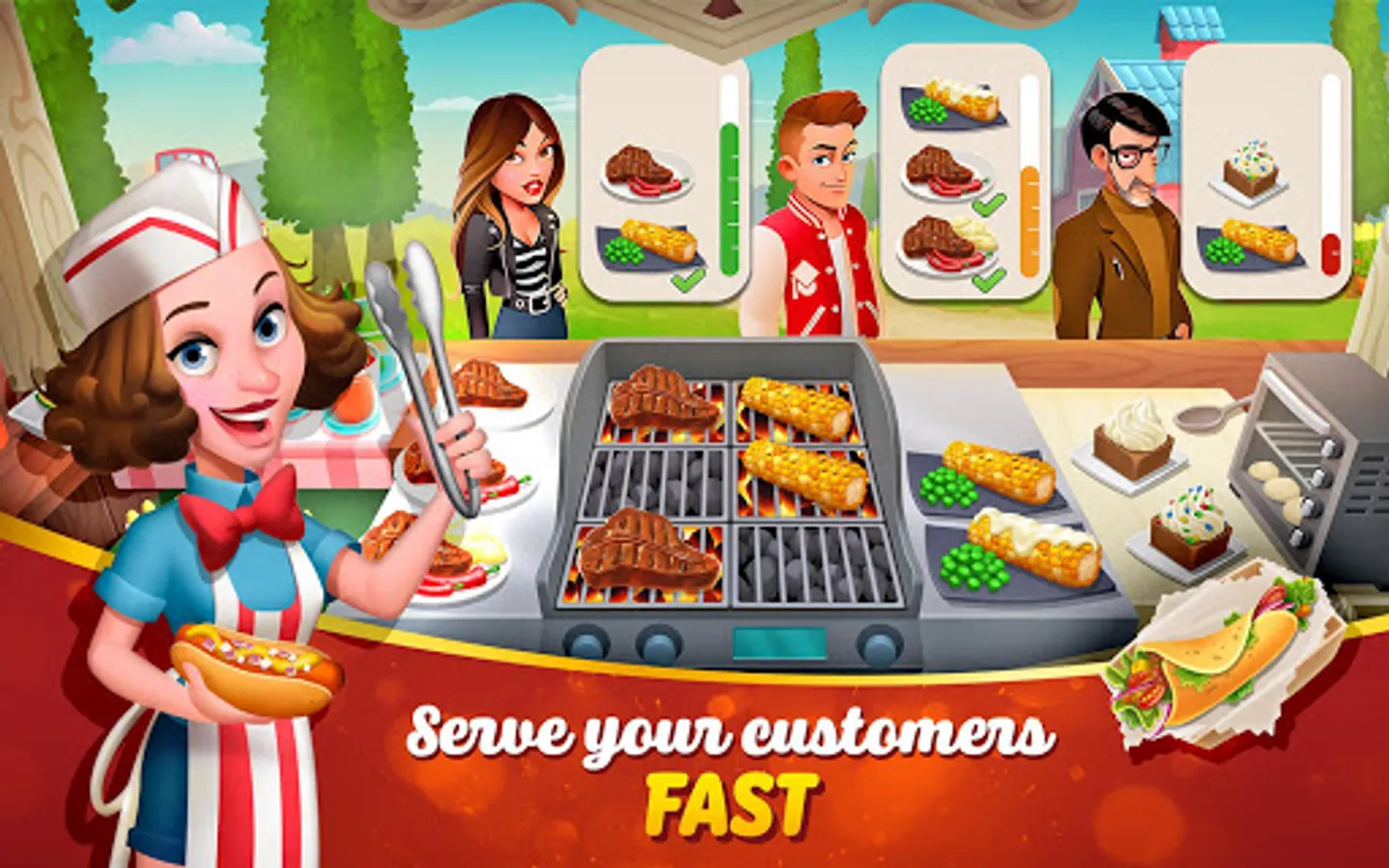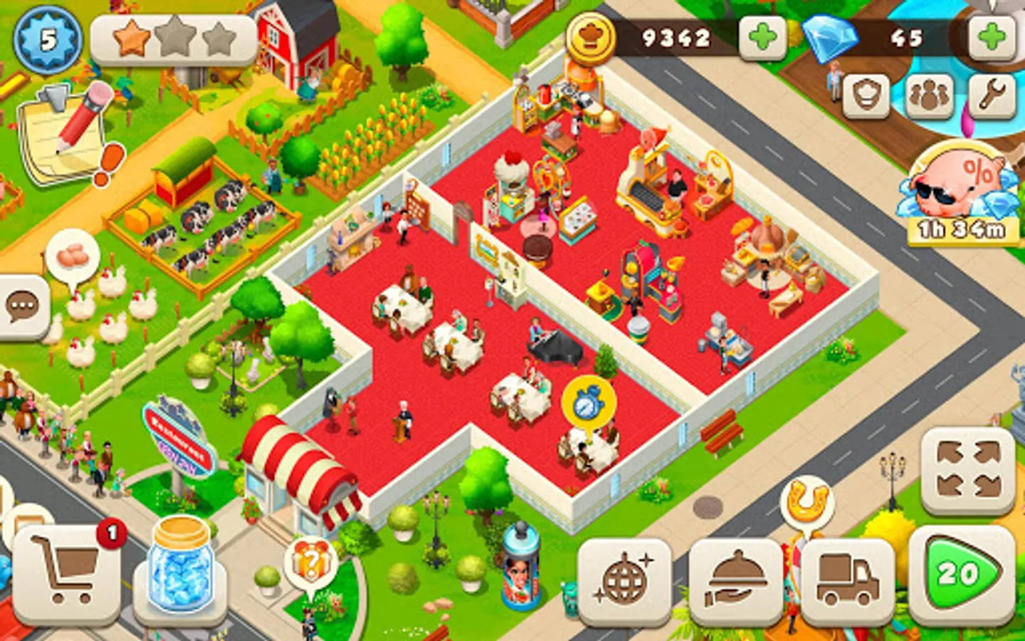 Your gourmet customers will get you cooking all sorts of food in this game; from burgers 🍔, pizza 🍕, or sushi 🍣 to cakes 🍰 and muffins 🍪. Keep your farm producing and be ready to cook the perfect dish at all times! Your town is filled with movers and shakers. For those hungry customers on the go, make sure you're cooking and serving them dinner as quickly as possible, in the game within a game; Tasty Dash ⏱. Remember, to become the ultimate restaurant tycoon, time management is key!