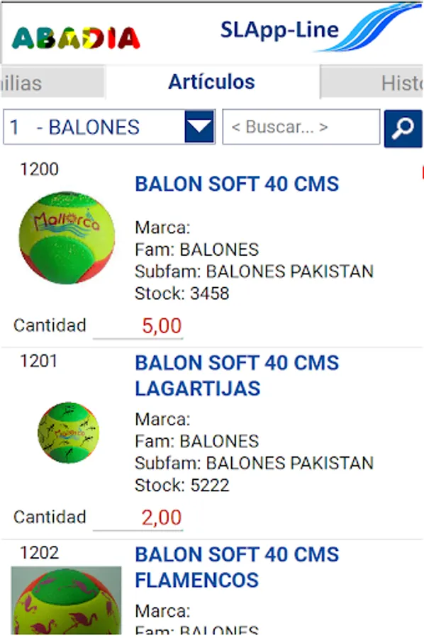 It allows to search and filter the articles by Family or by the description of the product.