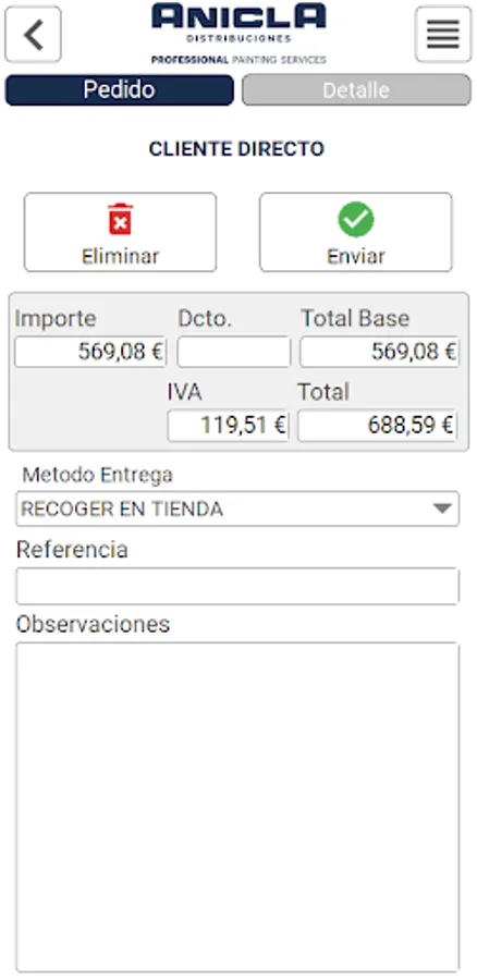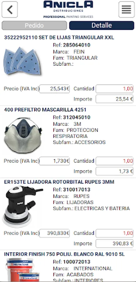 With the app you can place your order, adding the desired items. and sending the order once it is finished. The order will be integrated directly into the ERP (Fact-Line®) of the Distributor, who begins to manage the preparation and delivery of the order.