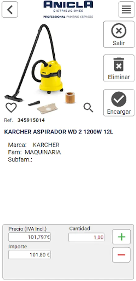 It allows to search and filter the articles by Family or by the product description.