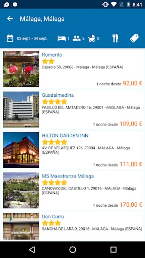 - Buscar hotel en ciudades, zonas concretas, lugares de interés...