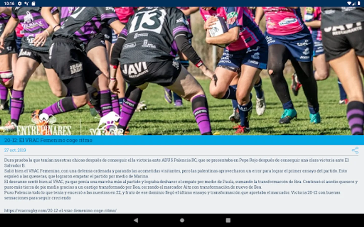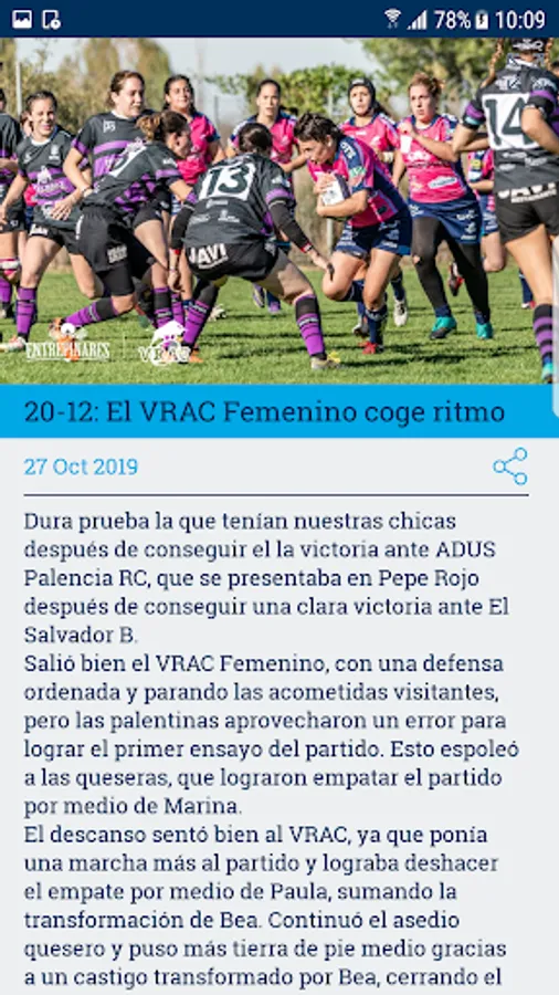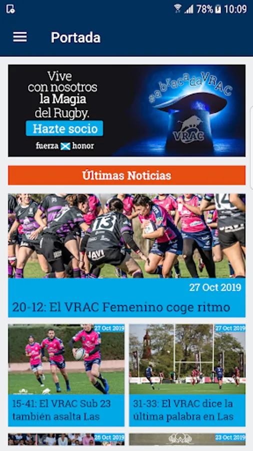 The official application of VRAC Quesos Entrepinares is the best way to keep abreast of the news of the club as well as to follow the games, among other features.