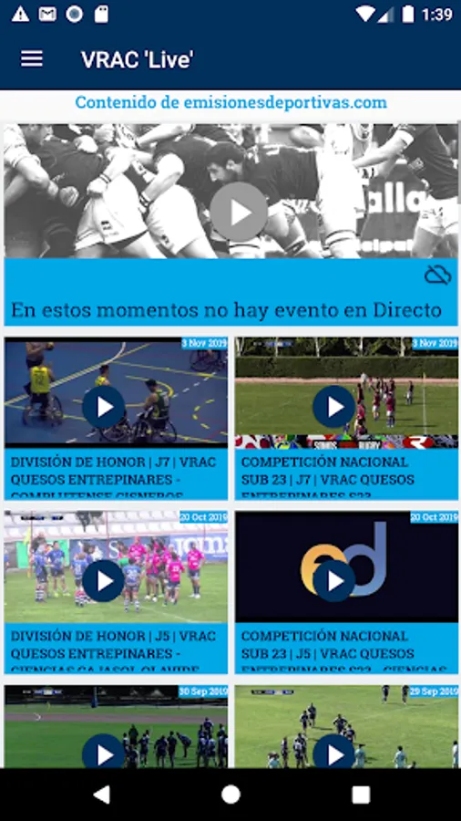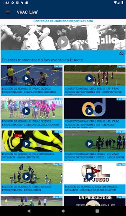 VRAC TV: in this section, access the Emisionesdeportivas.com channel to be able to enjoy the live VRAC games in streaming, wherever you are, as well as access the rest of matches that have taken place in the past.