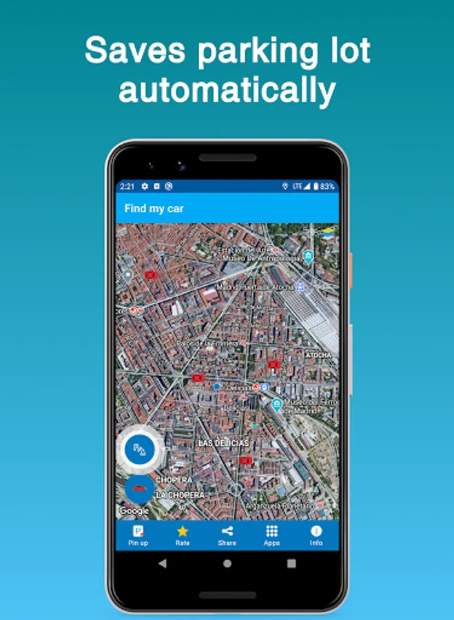 • Automatic parking detection: The app remembers the parking lot by itself when you turn off the ignition in your car. It works even with the screen off and without you having to do anything. It works with Bluetooth technology.