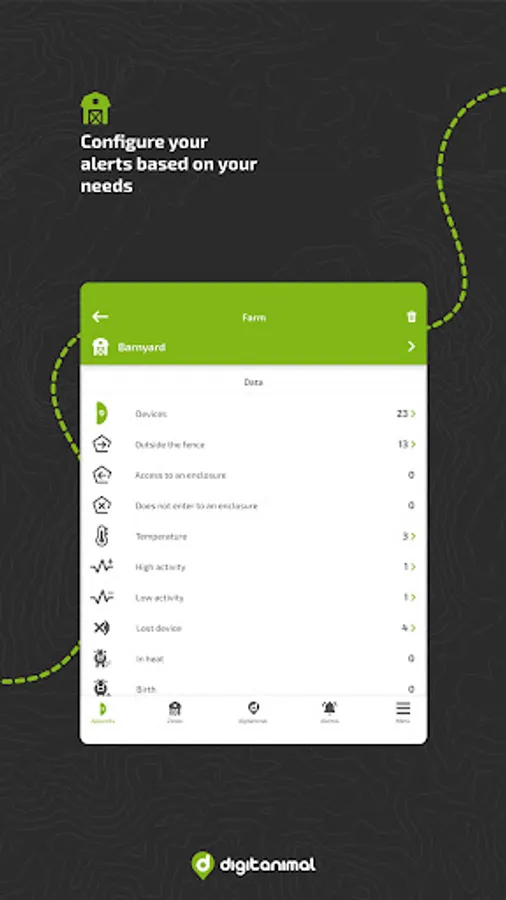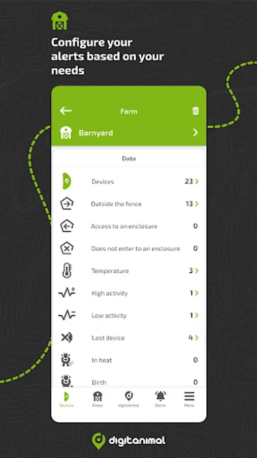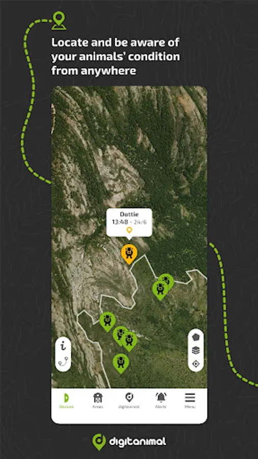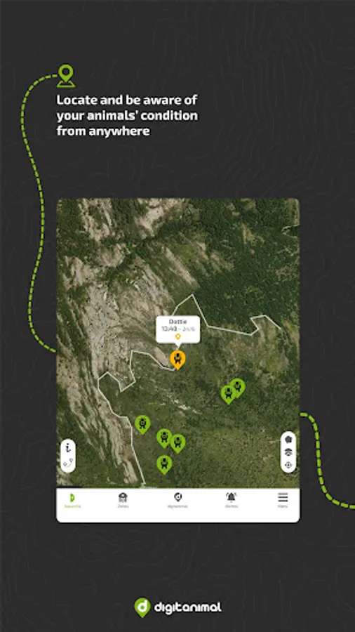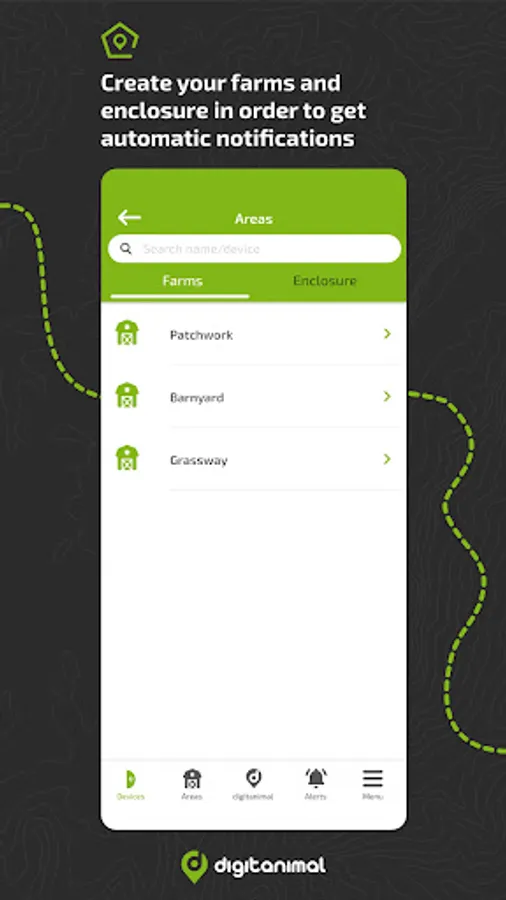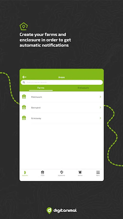 Draw the enclosure where your animals will move inthe digitanimal app and receive alertseach time your animals move out or into this enclosure.