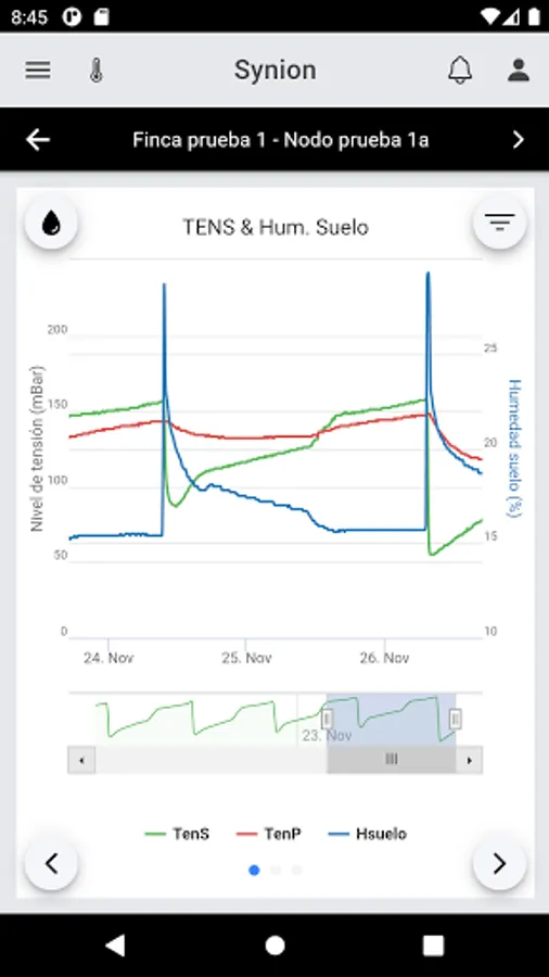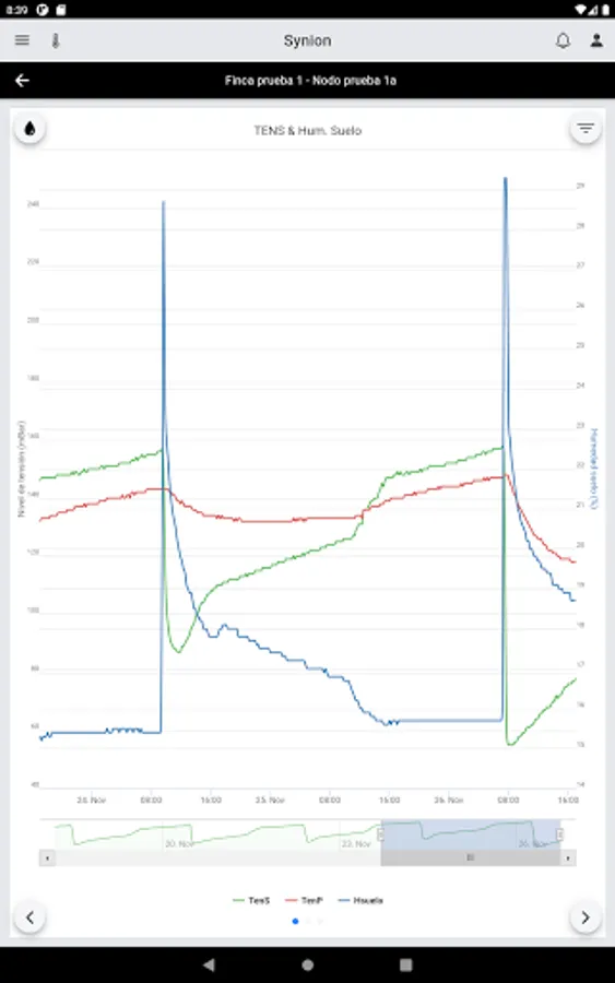 SynionApp is a tool created for professionals in agriculture. It allows you to consult the data generated by IKOS CONTROLLER and view historical graphs of your crop. It is the ultimate tool for sustainable precision agriculture.