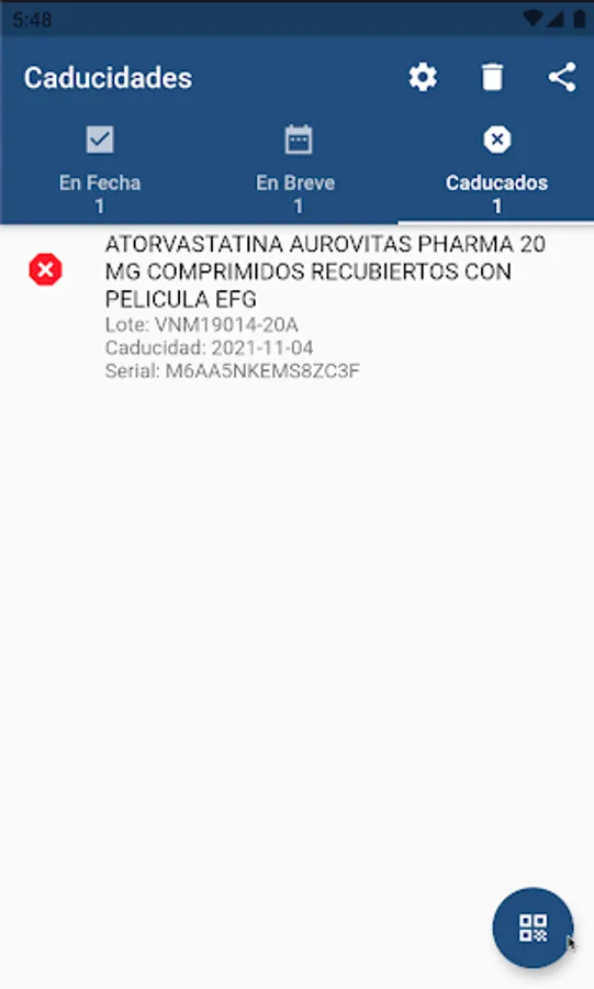 Make an inventory of medicines and control expiration dates. By capturing the QR code that comes on the packaging box. Each catch will be registered and cataloged according to its expiration: on date, it expires shortly or already expired.