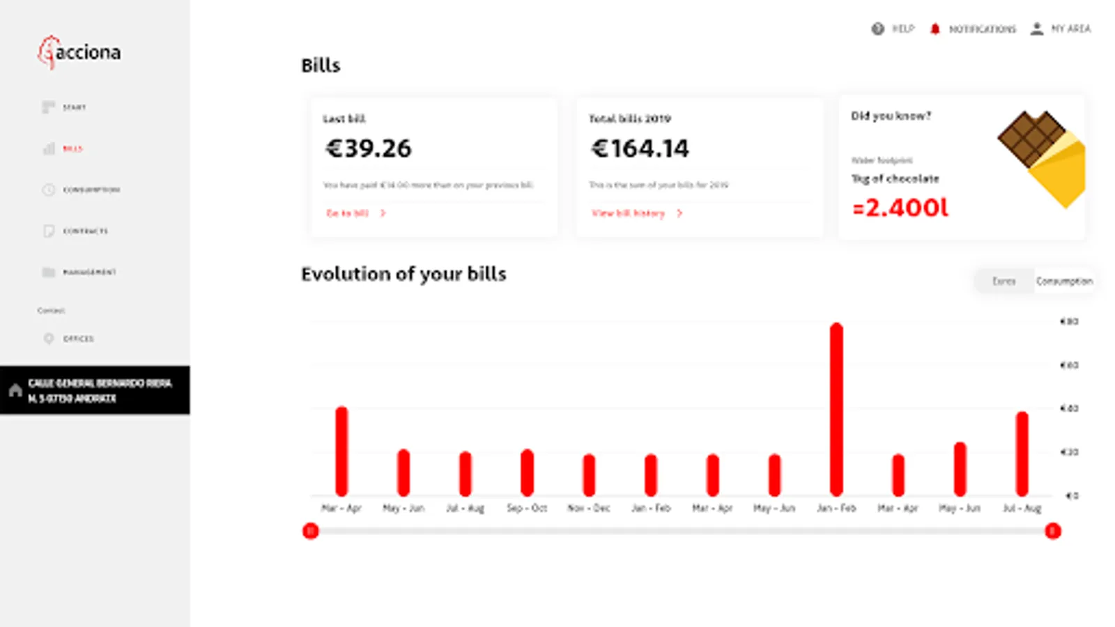 It is intuitive and easy to use. You can carry out the most frequent operations related to your water supply contract in a user-friendly way: