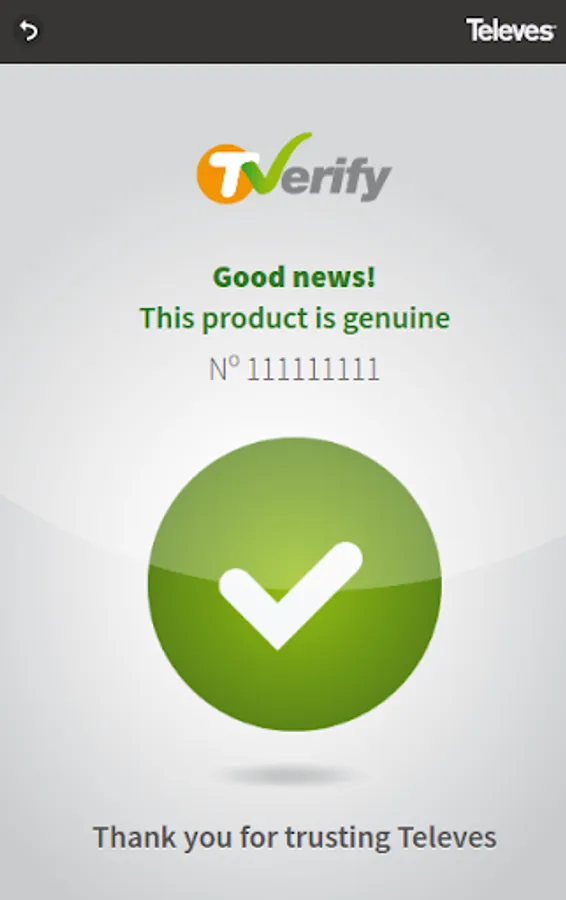 Televes official application through which you can verify the authenticity of products manufactured and distributed by Televes worldwide.