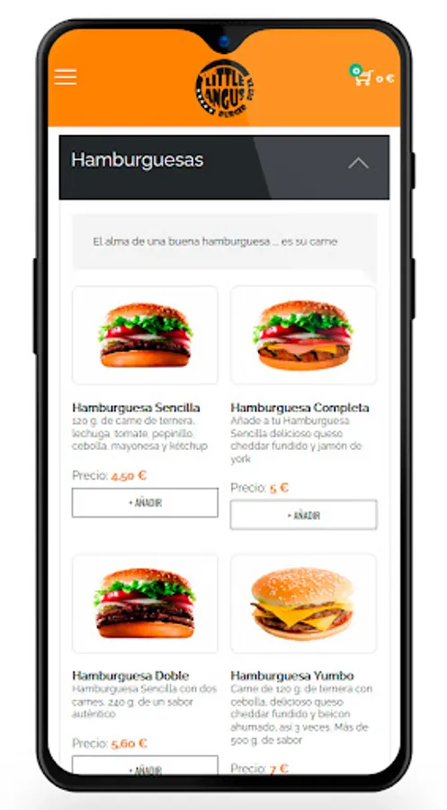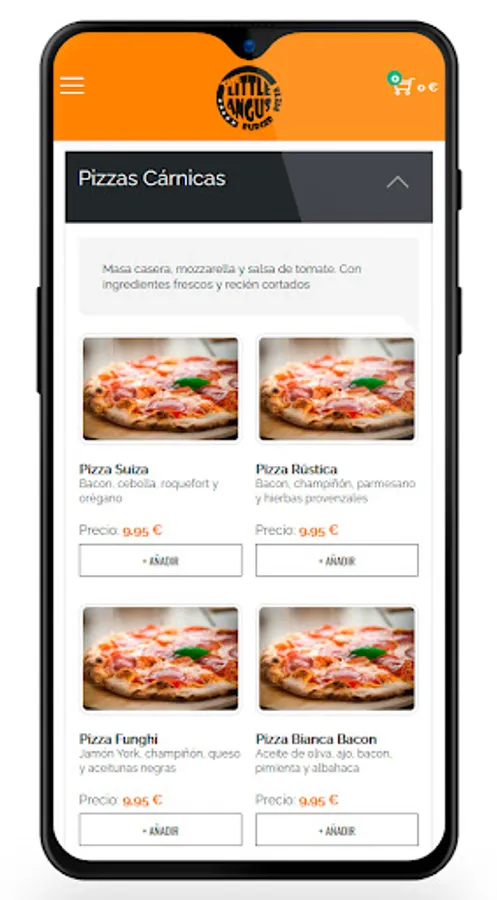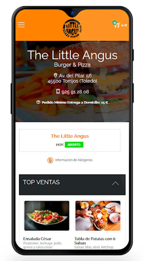 The Little Angus Torrijos is a fast food restaurant specialized in Pizzas, high quality artisan hamburgers. We have home delivery in several postal codes near Torrijos and you can also enjoy our complete menu to pick up locally or consume at our establishment on Avenida del Pilar 56 in Torrijos. Come meet us or order at home. Download our app.