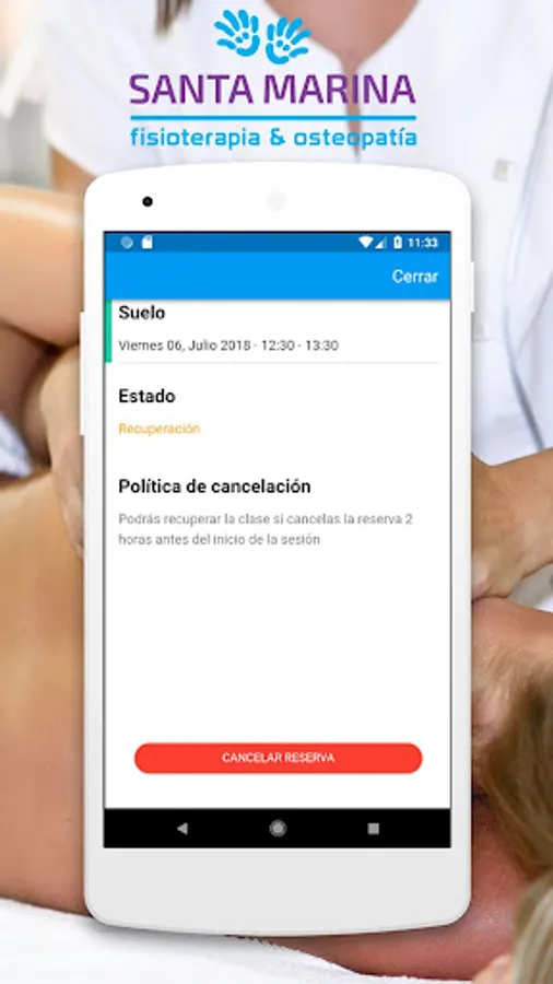 APP for user Fisio Santa Marina in Cordoba, where you can manage backups of your classes.