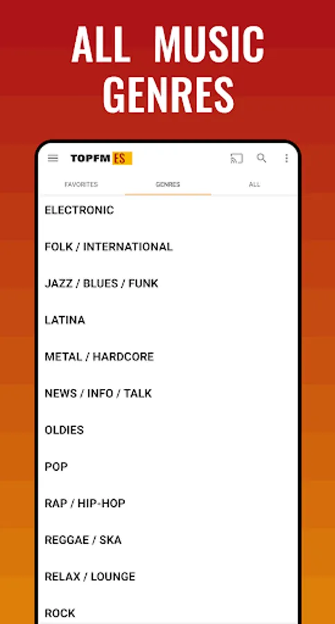 All genres of music online: Pop, Rock, Latina, Metal, Jazz, Blues, Funk, Soul, Rap and Hip-Hop, Classical music, Reggae, Ska