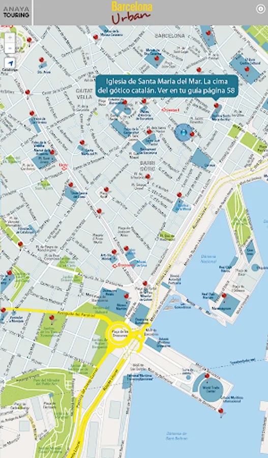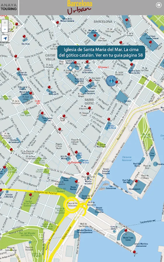 It consists of an offline plane where places of special interest, considered essential in a visit to Barcelona are located. The GPS will locate at all times showing you those points around you, without the need for internet connection or pay fees to operators.