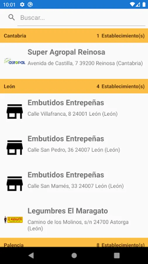 - Establishments where lentils from Tierra de Campos are sold, labeled.