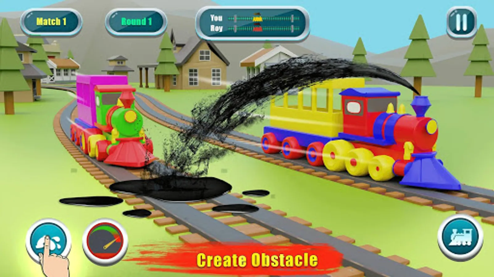 To win train racing you need to tap as fast you can to increase speed of train. Each round increase difficulty of player to compete with opponent.