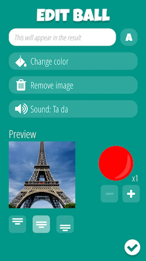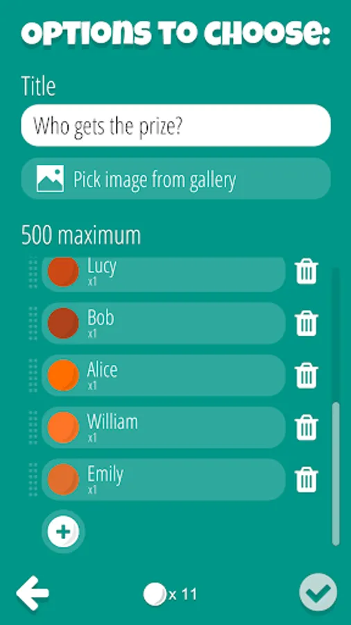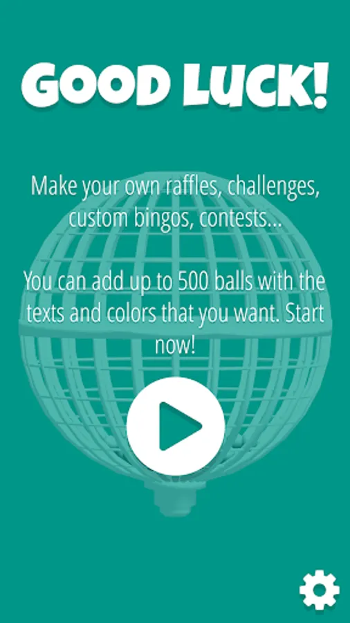 You can create different cages, each one with a maximum of 500 balls. For each ball you can choose the color and the text to be displayed when chosen. Everything you create is saved so that you can use it whenever you want.