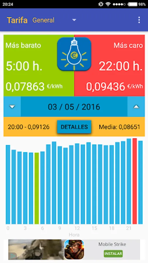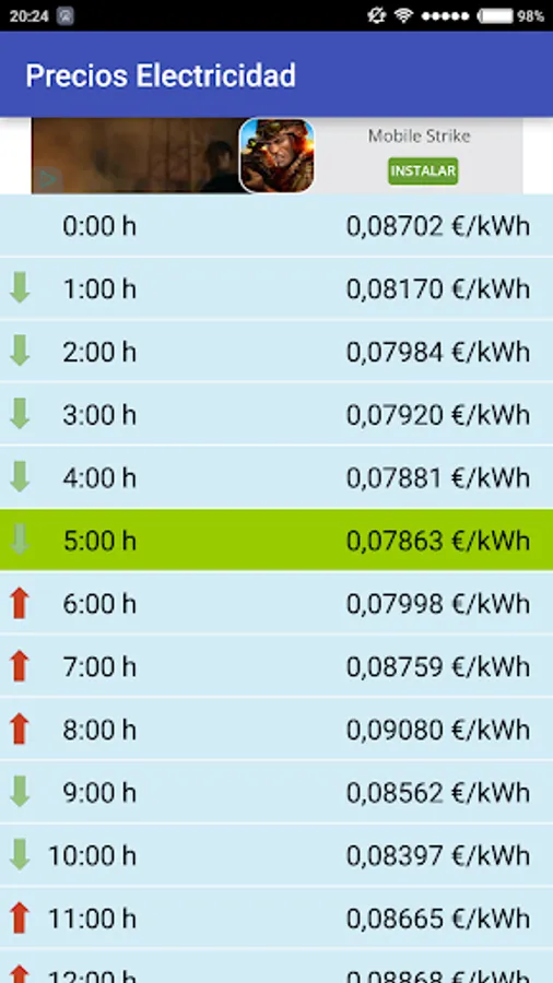 Daily prices are published by the Ministry, so with this application you can view a simple and fast way. You can also compare prices using a graphical or list by hours.