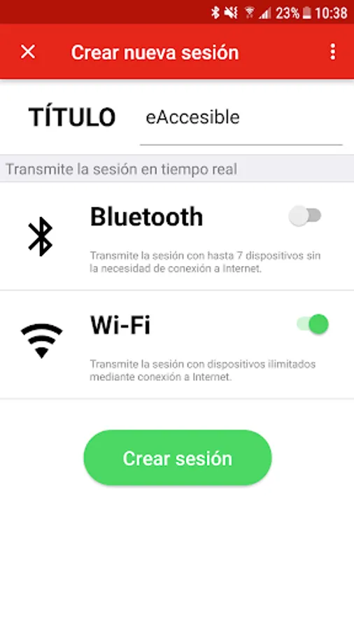 There are two operating modes: in the sender mode the user can create sessions and enter the text that he wishes to transmit in real time, and in the receiver mode, one or more users can see the list of active sessions and can connect to receive the content. relayed by a transmitter in real time.