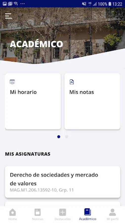 • Private profile: All your personalized data according to your university profile. Check your subjects, grades, etc. And also your digital university card. You will always take her with you!