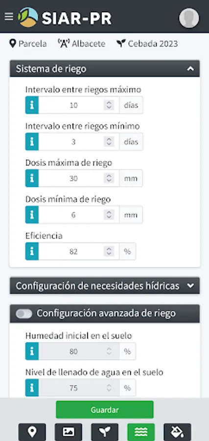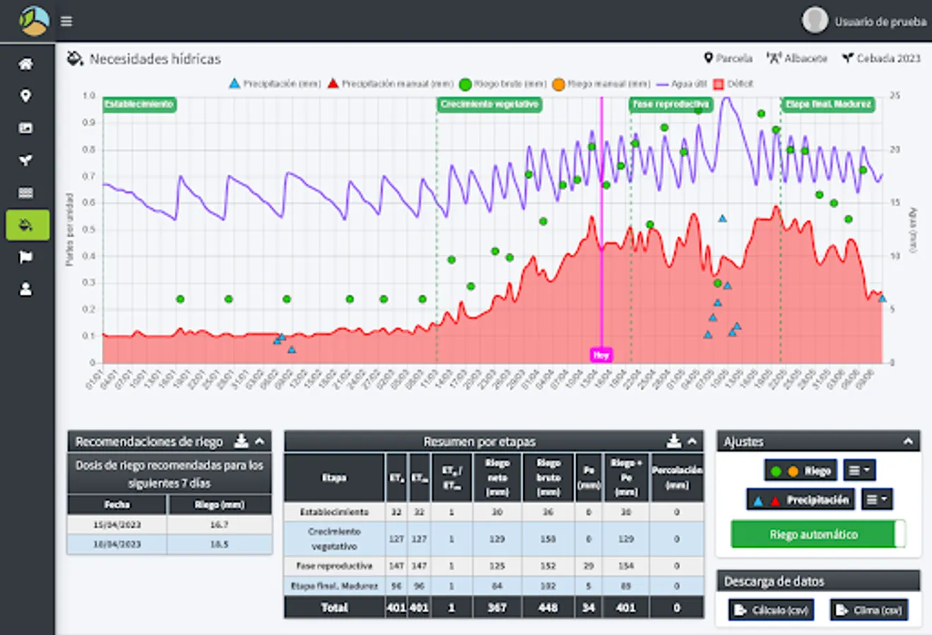 Application developed by the University of Castilla-La Mancha and the Castilla-La Mancha Community Board that calculates the irrigation needs of herbaceous crops and woody crops under controlled deficit irrigation techniques for the Castilla-La Mancha region.