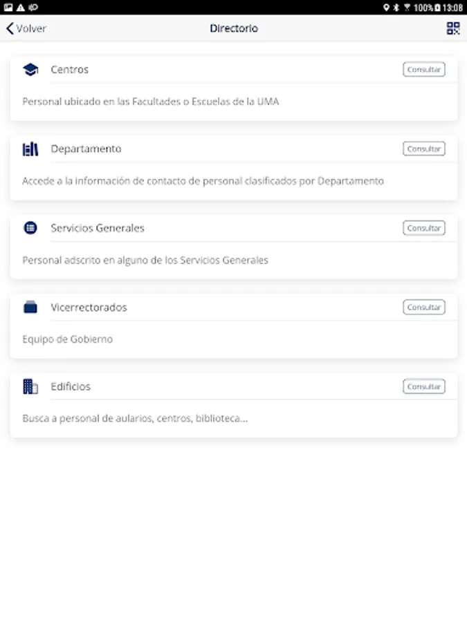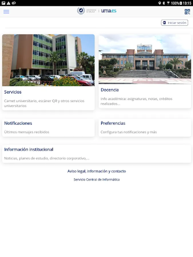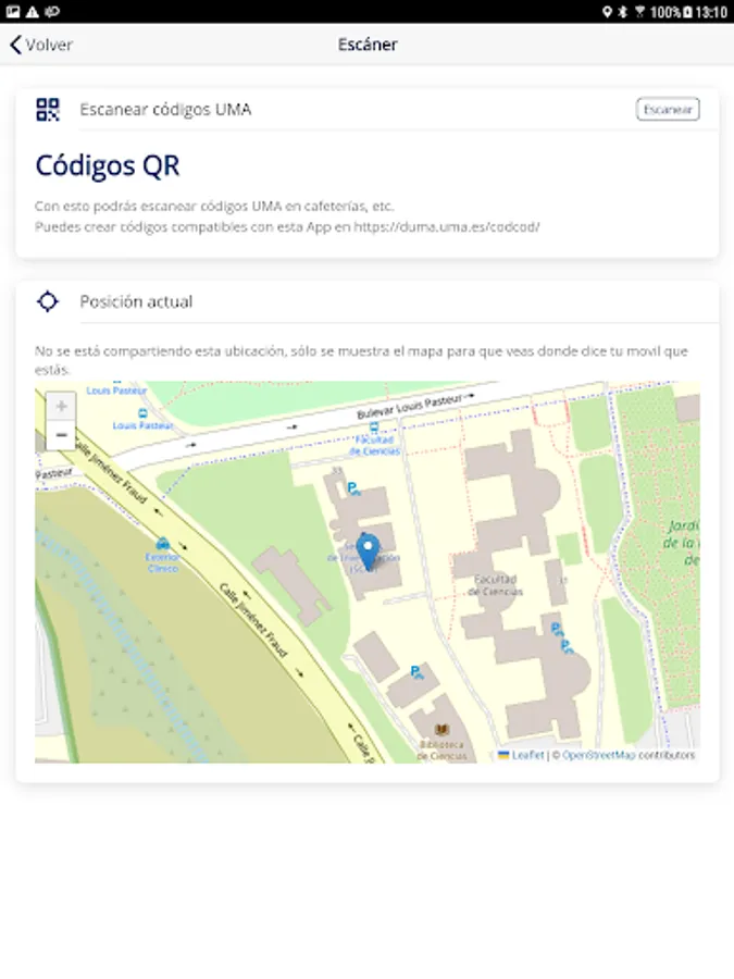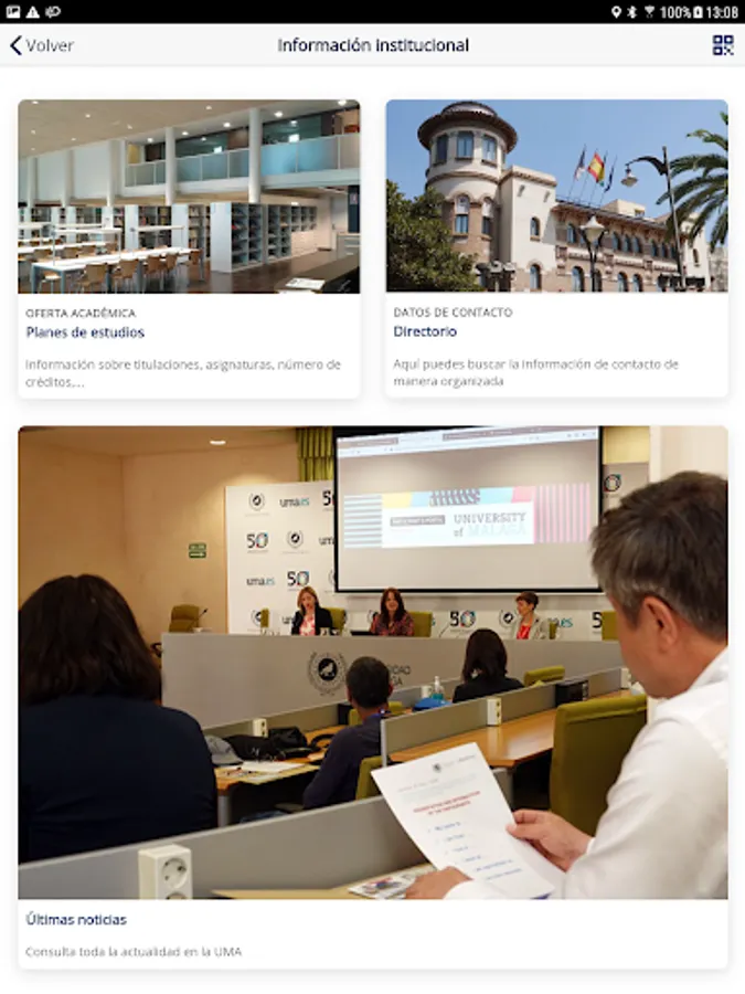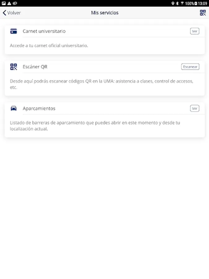 Possibility of scanning the UMA QR codes that allow different actions: class attendance list, discount in university cafeterias,...