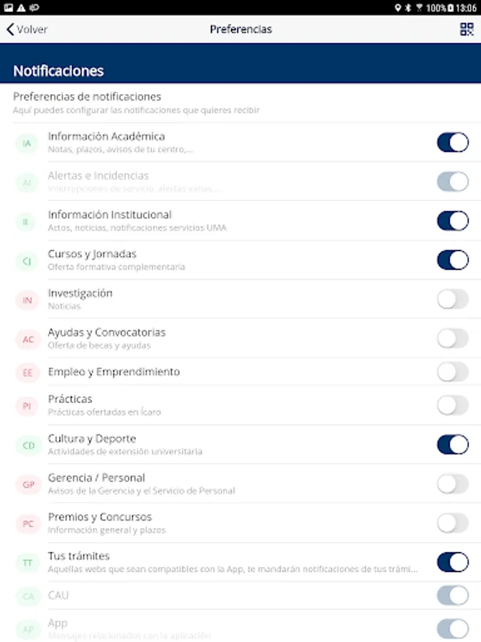 By subscribing to the "Academic Information" channel, you will receive a note publication notice every time a teacher publishes a note for the user.