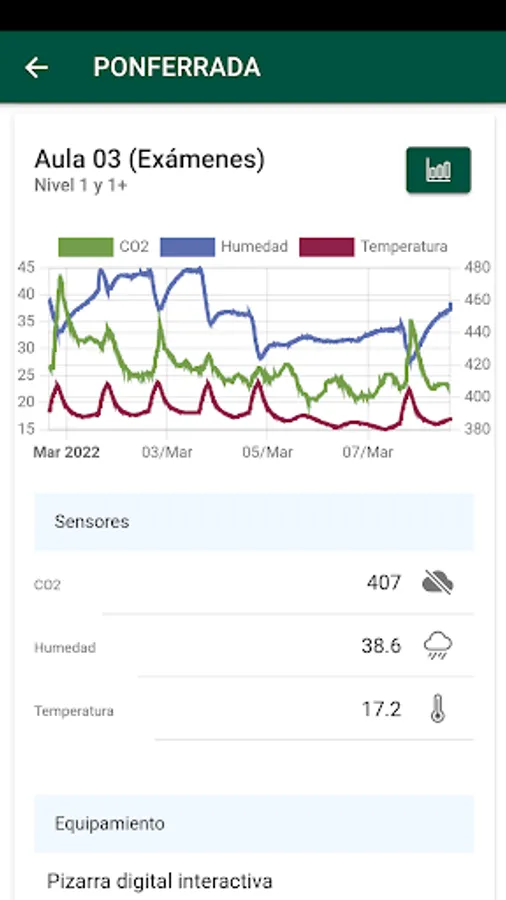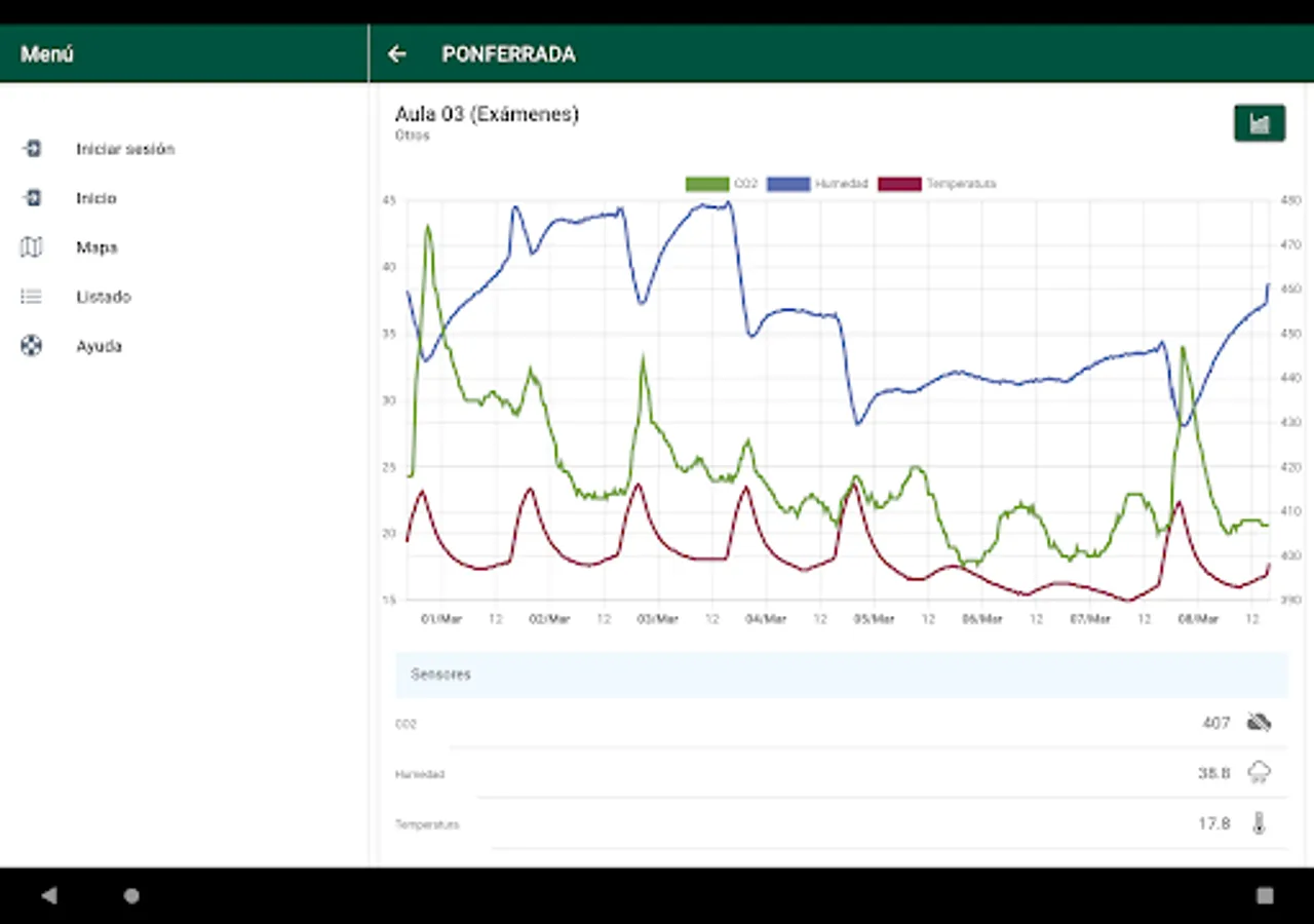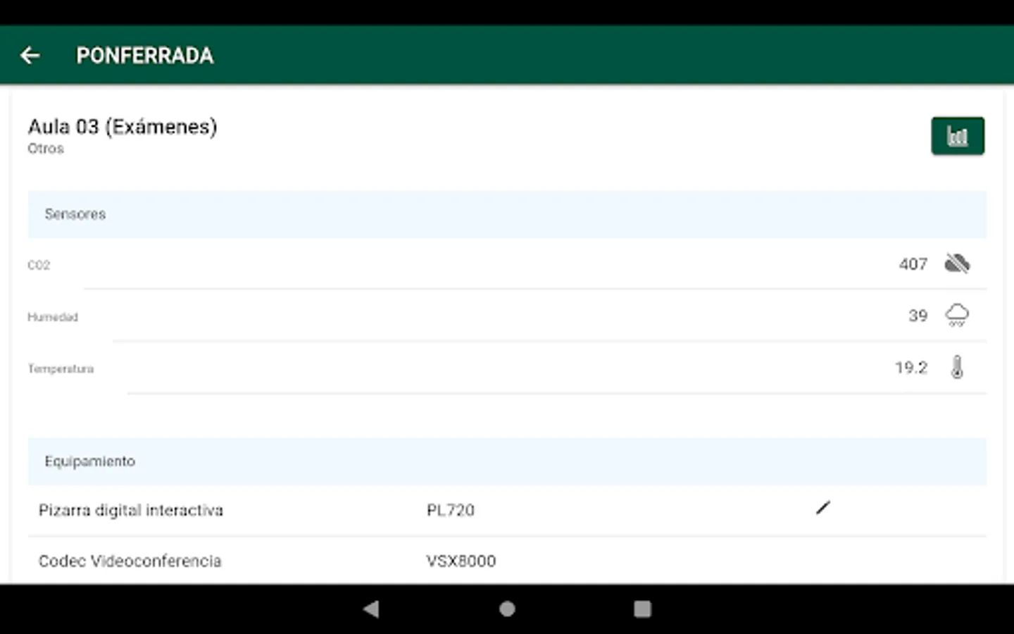 These venues can be viewed on a map or through a search engine. In this way, you can obtain the contact information of the UNED in each of its offices as well as the location and route to them. Likewise, the historical records of sensors located in some Classrooms and Centers (temperature, humidity, CO2,...) can be viewed.