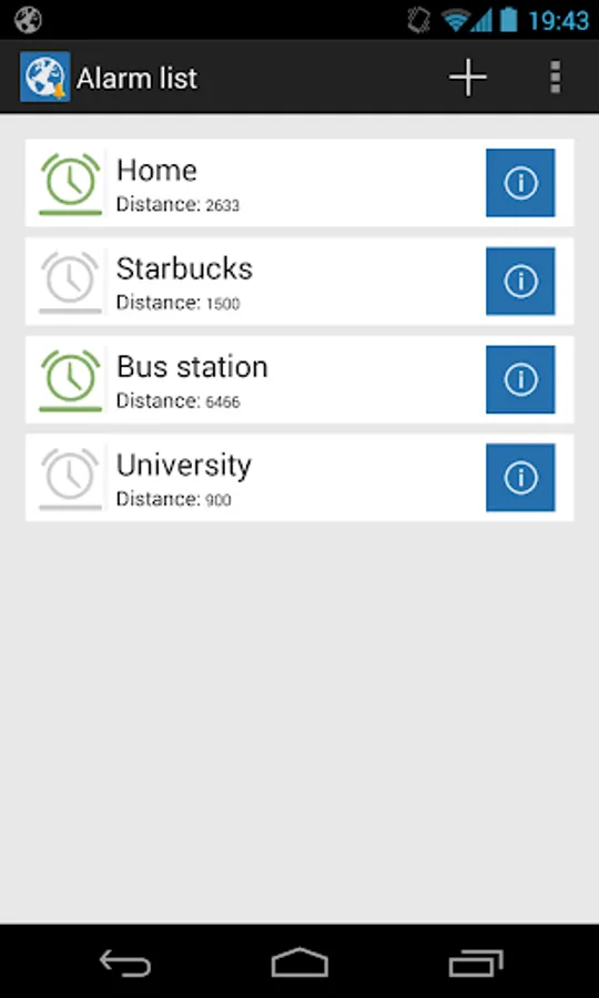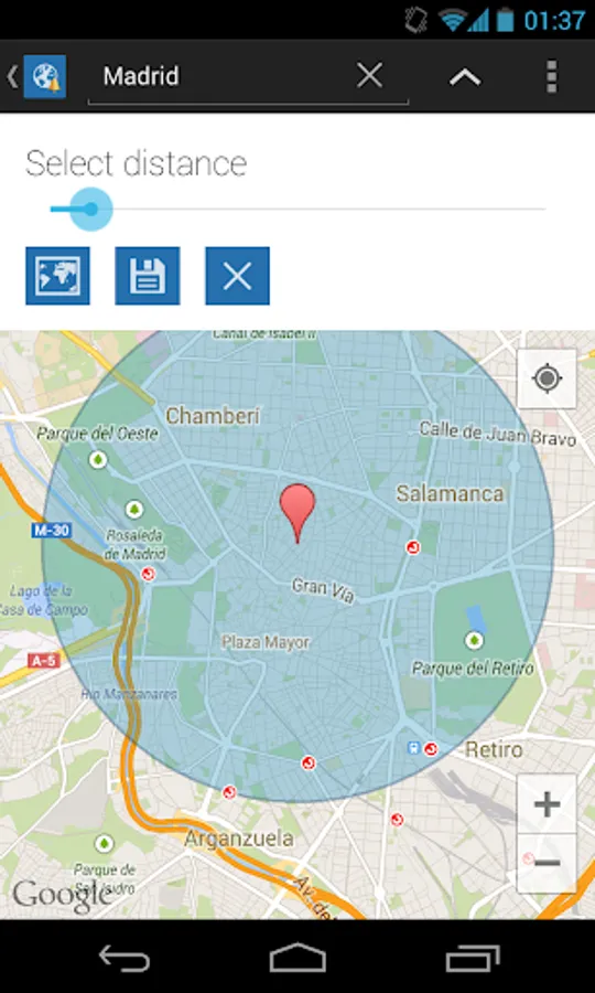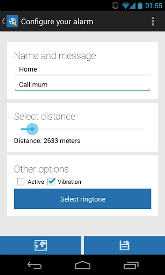 Select a location, ringtone, vibration and distance and sleep without worry. When your location selected is near you, the alarm will sound avoiding you to miss the stop.