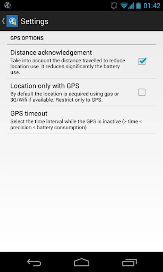 And you will ask me, does it drain my battery?.You can say NO. It's design and advanced implementation allows you to save every volt of your smartphone. It works with GPS but also with Network, selecting the best location on each moment. If you don't move it does not consume your battery checking your position.
