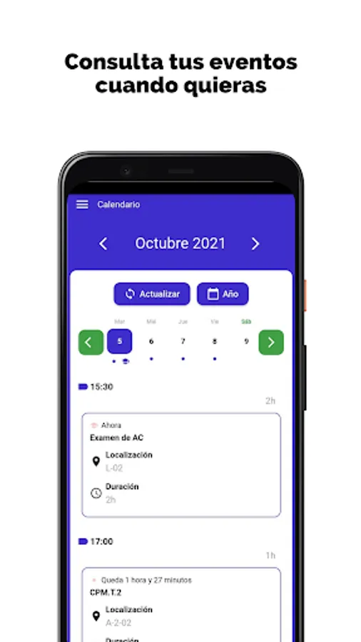 - Check your events: classes, exams, assignments and more