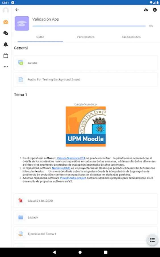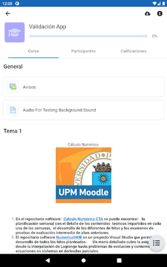 The UPM Moodle application allows the UPM community to access and work on the platform that houses the virtual spaces of the study subjects leading to official UPM degrees, undergraduate, postgraduate and doctoral degrees, in distance and support modalities. face-to-face teachings.