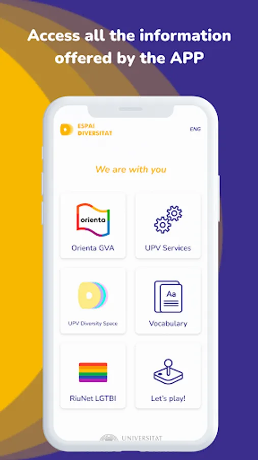 UPV Diversity Space is the APP of the Equality Unit, under the direction of the Office of the Vice-rectorate for Art, Science, Technology and Society, which facilitates the dissemination of the resources available at the UPV for the attention of our LGTBI+ students and provides information of general interest for anyone interested.