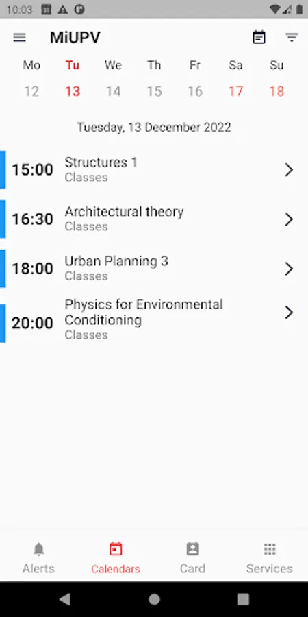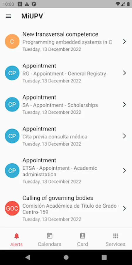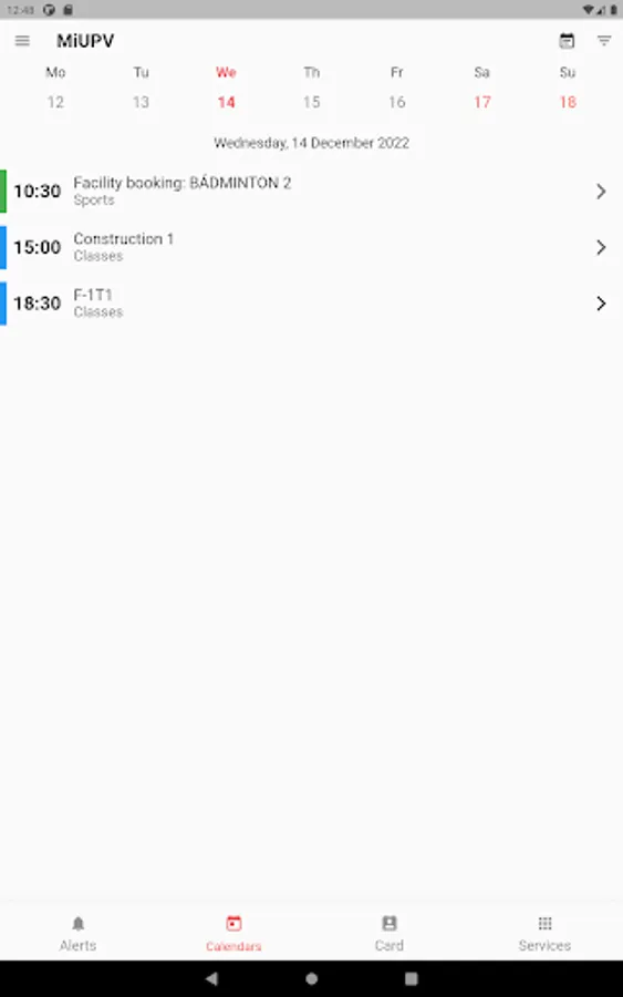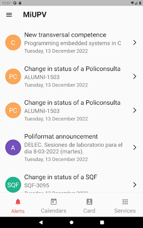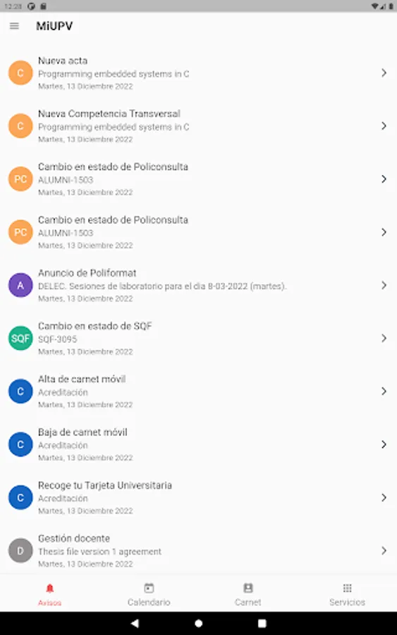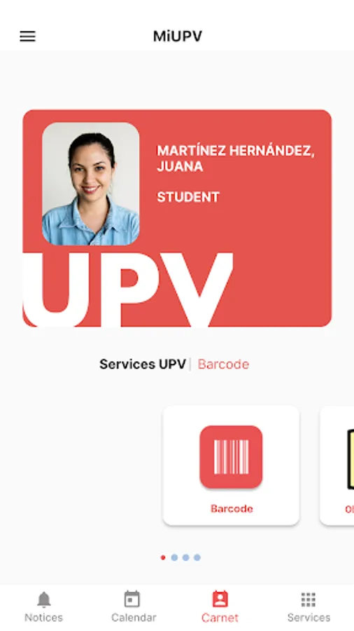 Through this application, the UPV offers its students and staff access to a wide variety of personalized services, including: