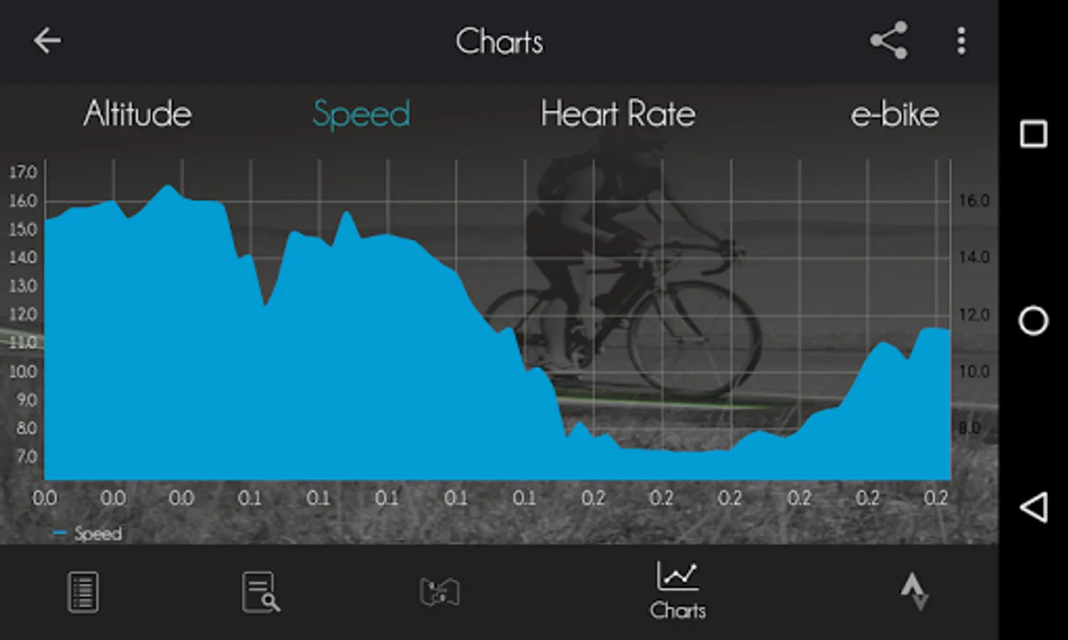 The user can post, share, represent or retrieve the activity data. The route is automatically saved in the smartphone and sent to the ebikemotion® web site for future management of it. Users can see the path, data, graphics and related details