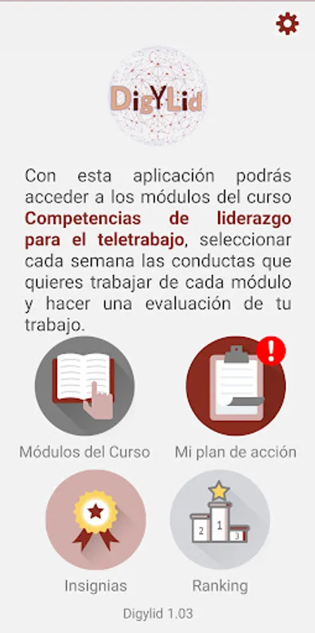 This App is part of the training program in leadership skills for teleworking, Digylid. The training uses the AMENA methodology, which comprises five phases: learn, model, exercise, name and apply. The application is used to carry out the last two phases (naming and applying). The objective is to carry out a personal action plan, in which the skills developed during the training modules are put into practice. You can only access the plan once