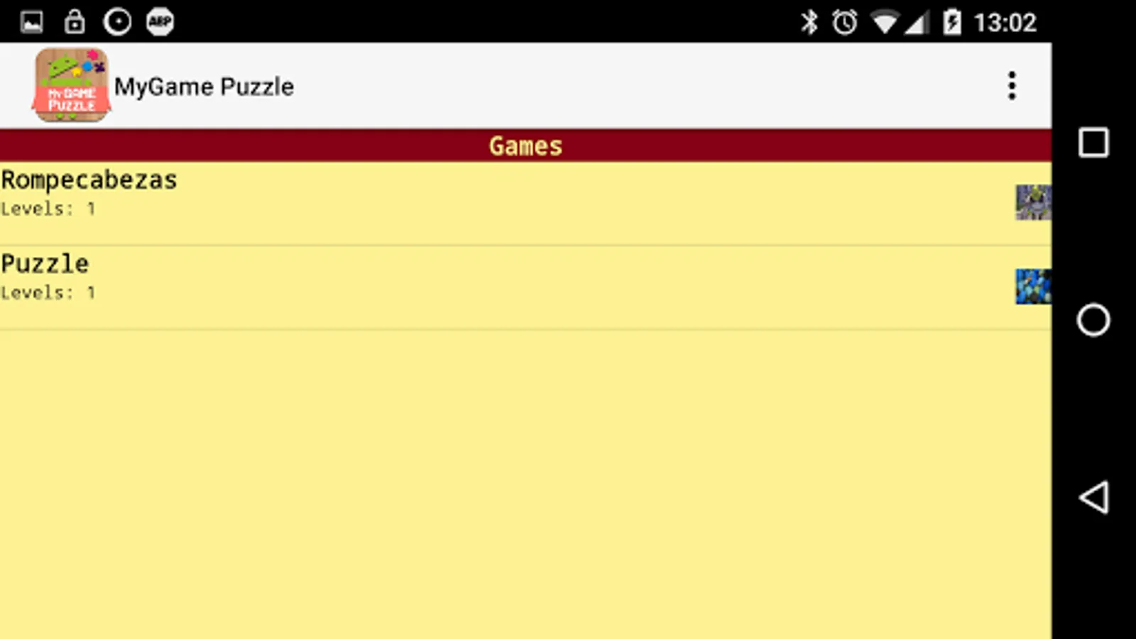 MyGame Puzzle is the fourth application of the MyGame line. In this line we want to make generators of games of cognitive stimulation, so that you can create and play this type of games, but always adapted to the end user. This application allows to create two types of puzzles and play to solve them.