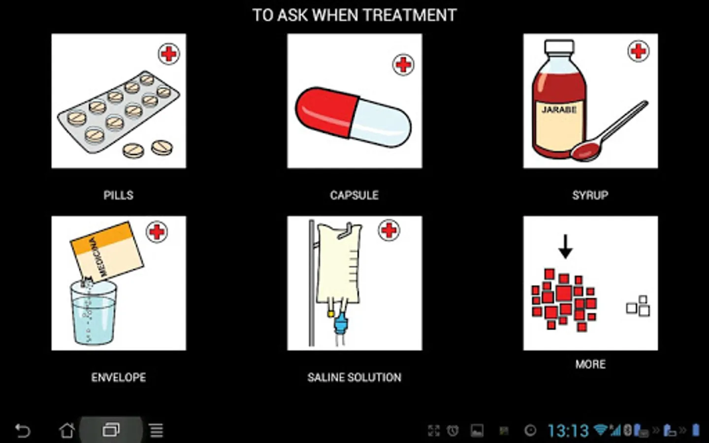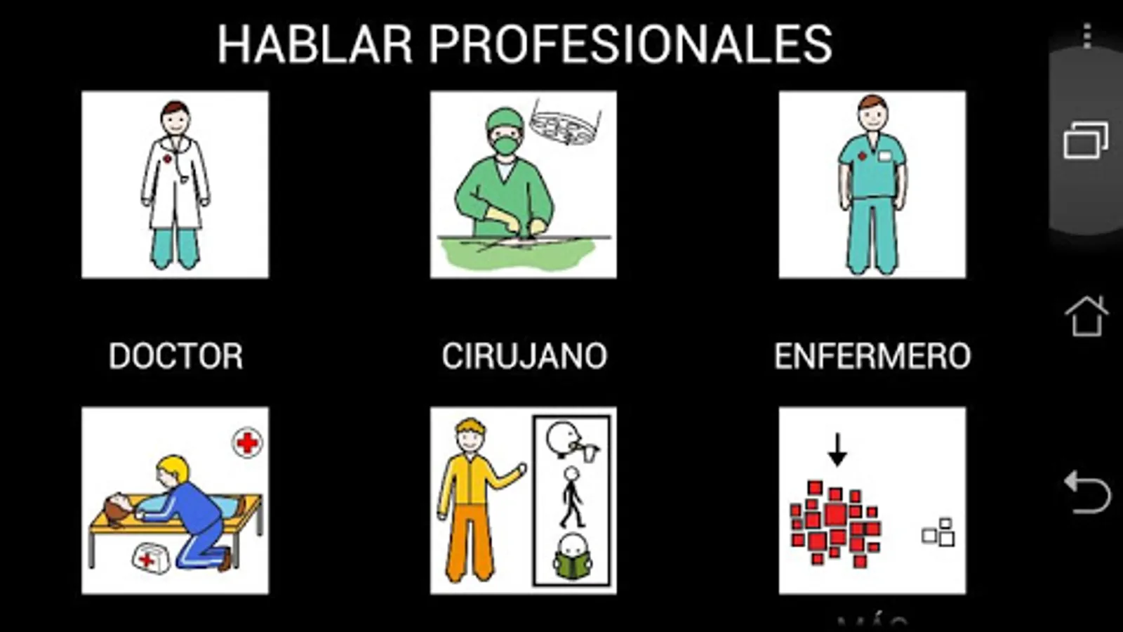 PictoDroid Med is a version of PictoDroid Lite intended for communication in medical environments. It is based on the Notebook of Support for Patient Communication created by CEAPAT.