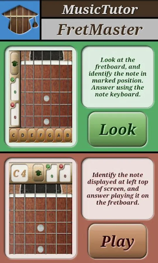 Learn the notes on your guitar! MusicTutor FretMaster is designed to help you learn the correspondence between notes and positions in the fretboard.