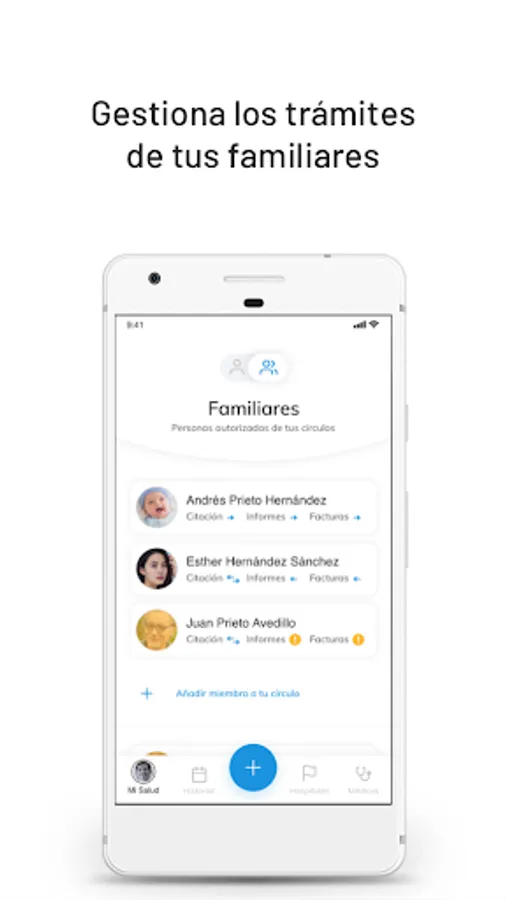 Manage the health of your relatives: manage appointments and reports from people around you.