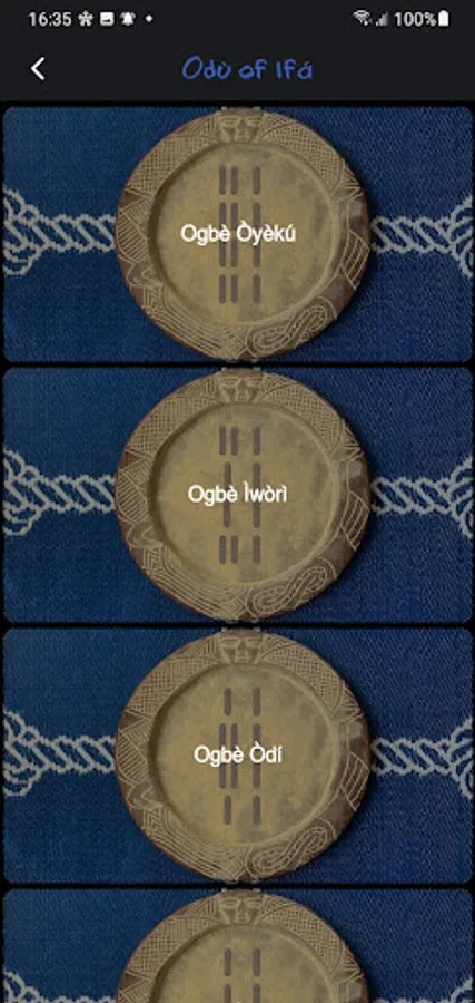 In addition, you will be able to check the progress of your Ifá studies thanks to our tests on the traditional practice, with questions related to the verses of the Apola Ogbè.