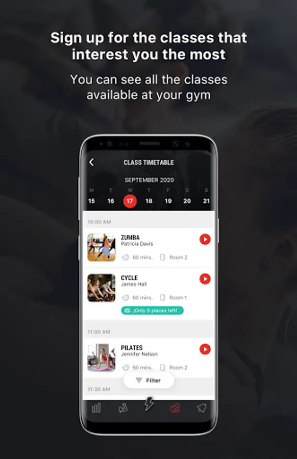 You will be able to see all the classes that are offered by your sports centre, filter them by type (cardio, bodybuilding, weight loss, aquatic), see what they consist of and which instructor will be teaching them and then sign up for those classes that interest you most.