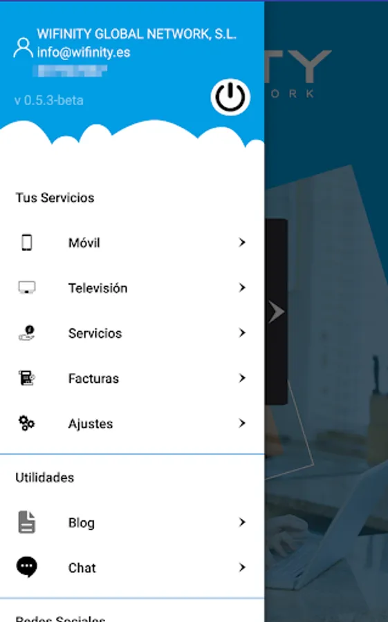 Application for Wifinity customers through which you can download your bills, change the status of your services, see your contracted services, receive notifications and soon, more functions available