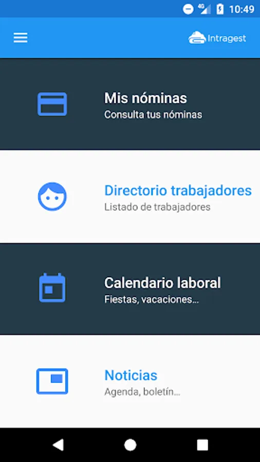 In addition contact quickly and easily with HR through the features offered you INTRAGEST APP: