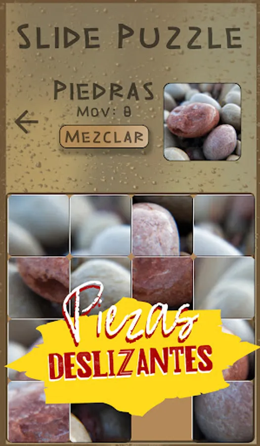 Game of sliding pieces in which you must place each piece in its place to discover the photo it hides.