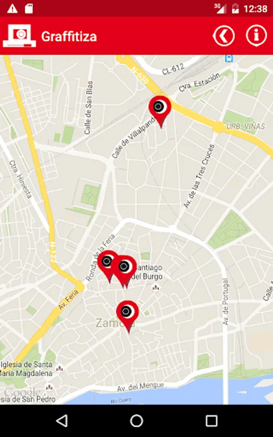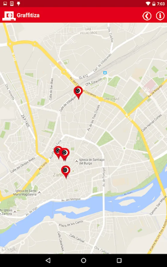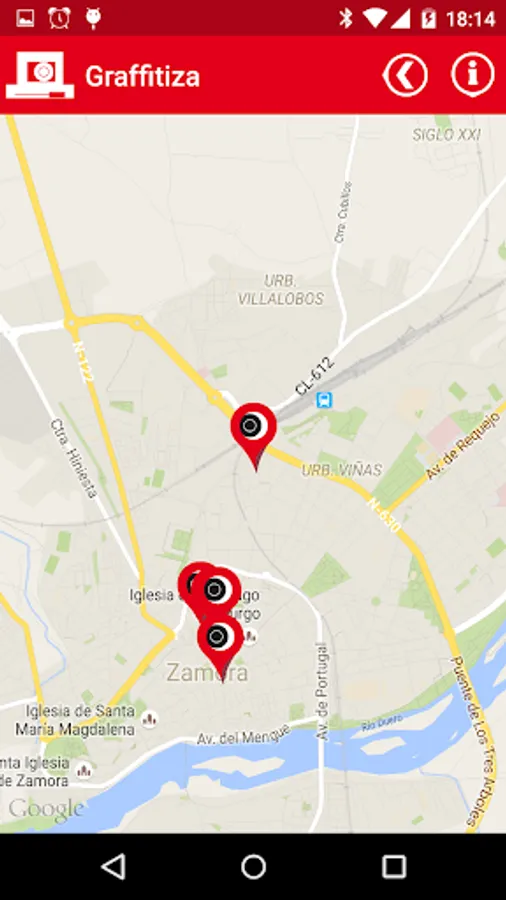 Locator of all points in the city of Zamora with the works of graffiti on walls made the town. Made for the municipality of Zamora.