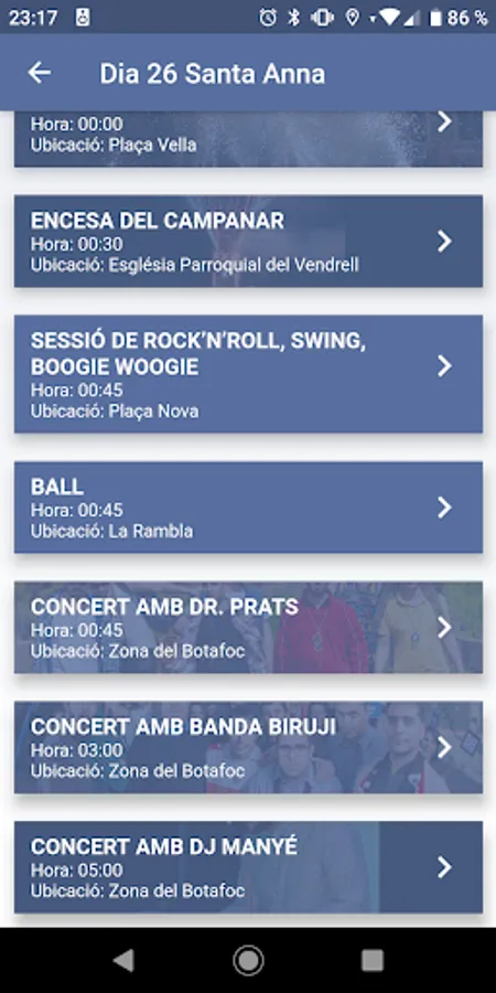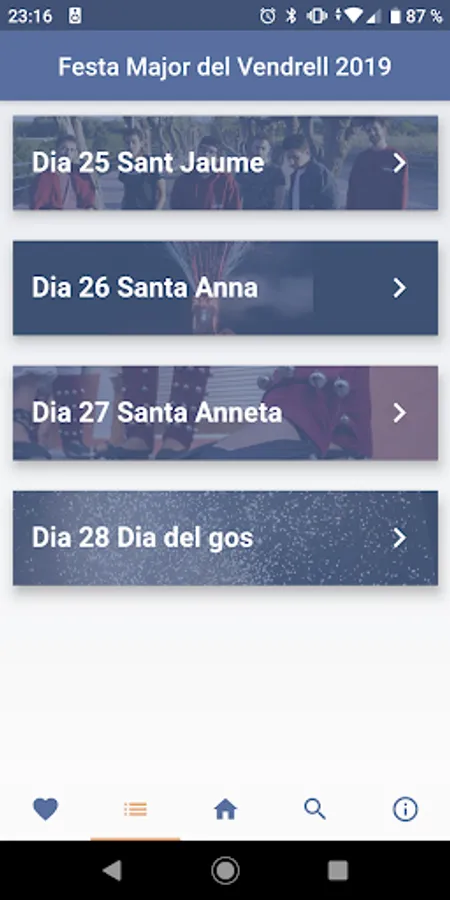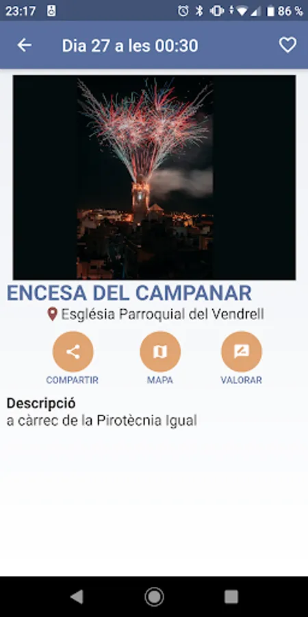 In this application you will be able to see all the events that are realizen per the major festivity of the Vendrell. To més, you can affect-the preferable per that et notifiqui abans de començar l'esdeveniment.